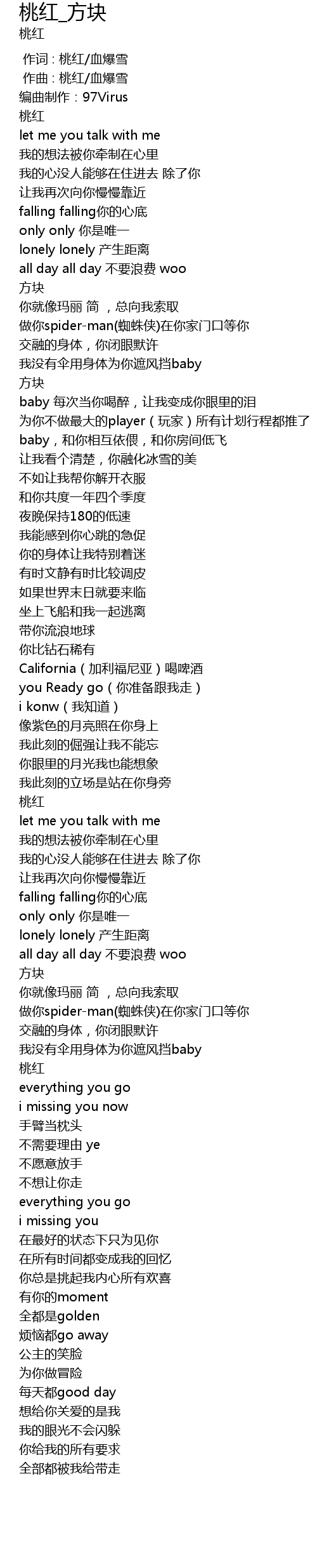 | [00:00.000] | 作词 : 桃红/血爆雪 |