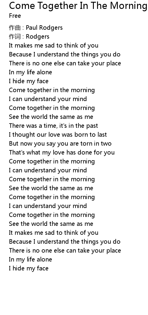 | Come together in the morning | |