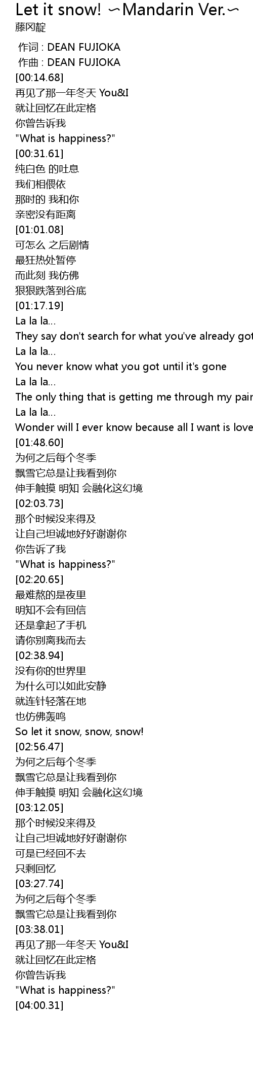 | [00:00.000] | 作词 : DEAN FUJIOKA |