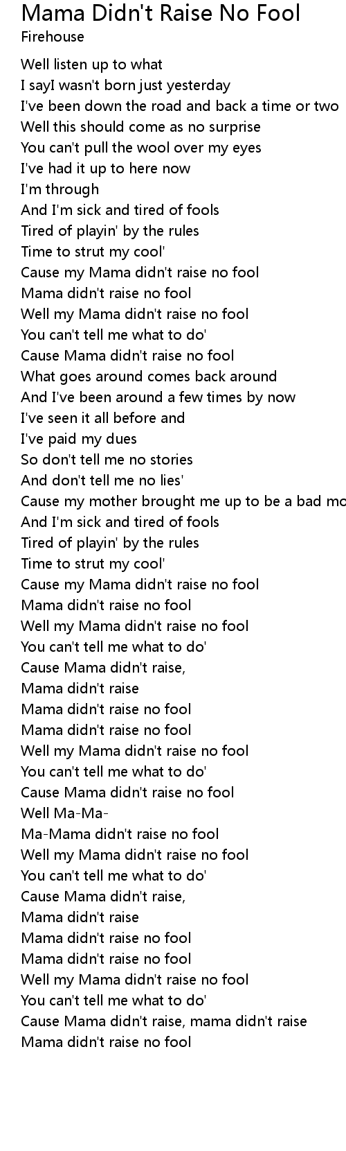Cause my Mama didn't raise no fool |
