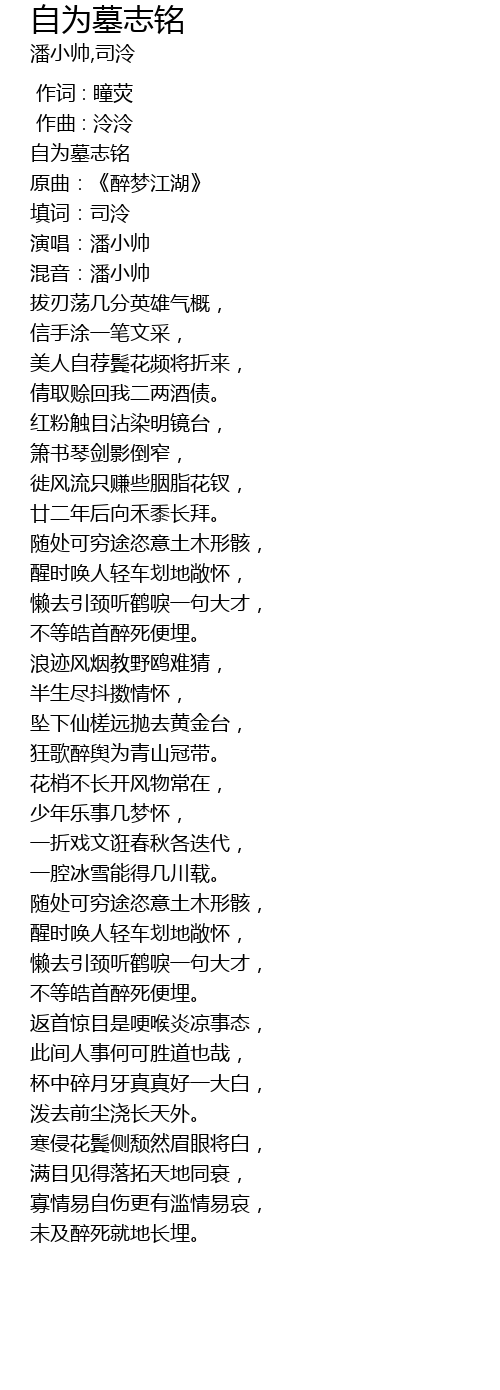 | [00:10.683] | 原曲:《醉梦江湖》 |