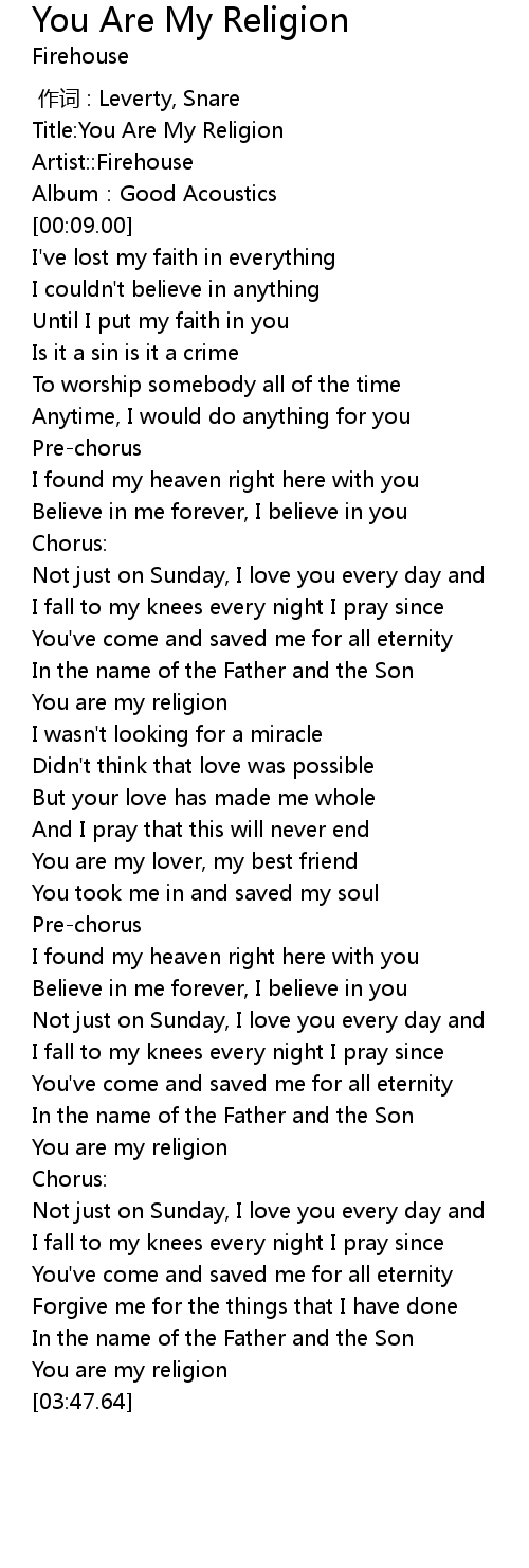 | [00:00.00] | Title: You Are My Religion |