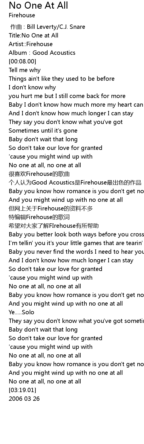 | [00:59.89] | 个人认为Good Acoustics是Firehouse最出色的作品 |