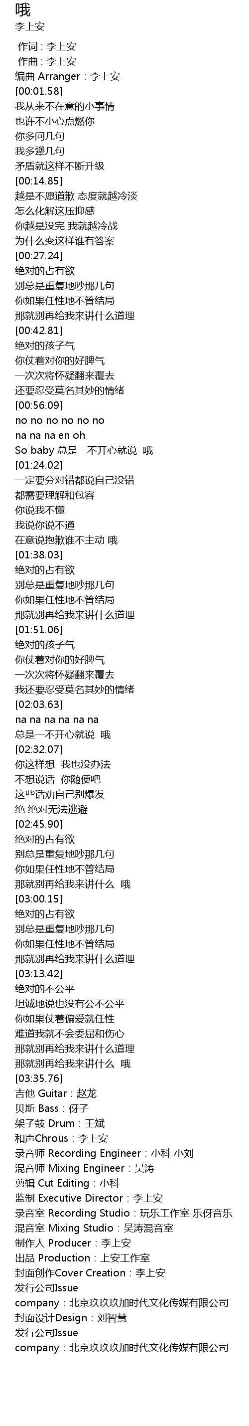 | [03:40.83] | 发行公司Issue company:北京玖玖玖加时代文化传媒有限公司 |