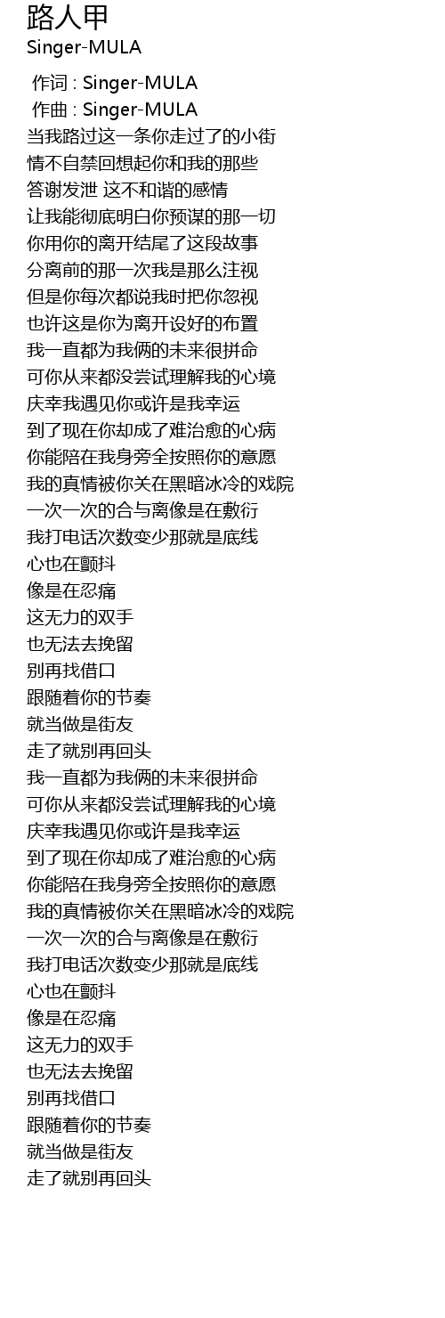 | [00:01.000] | zuò qǔ : SingerMULA |