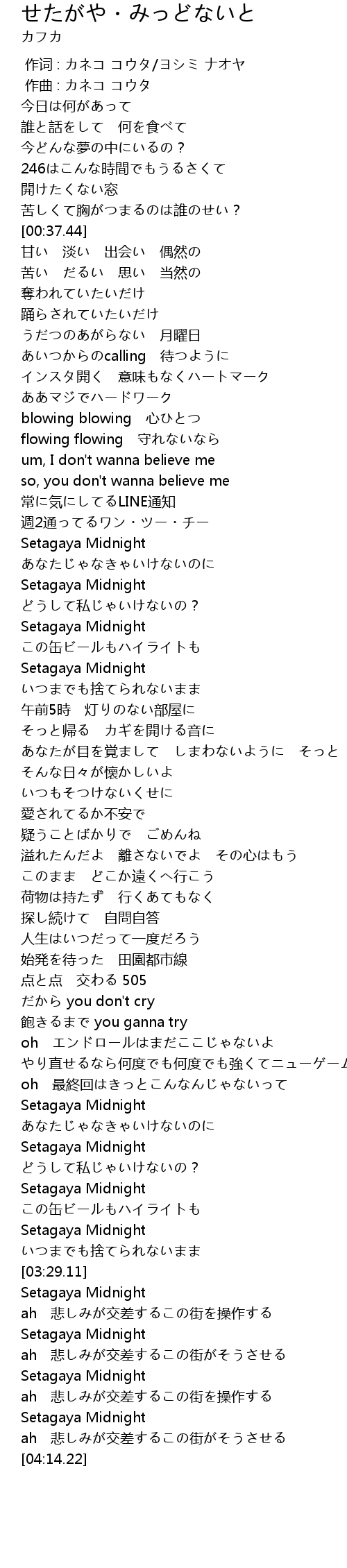 | [03:42.04] | Setagaya Midnight |