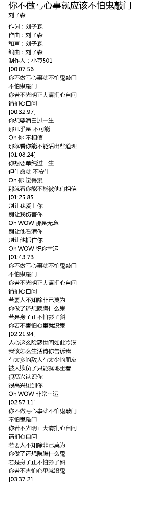 | [03:03.24] | 你不做亏心事就不怕鬼敲门 |