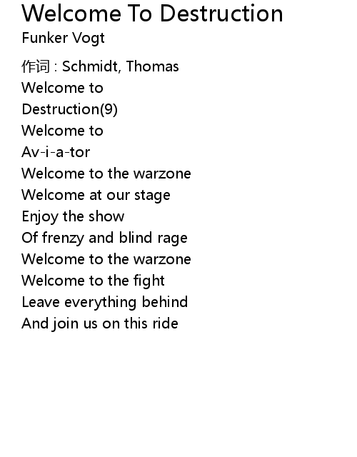 Welcome To Destruction Lyrics