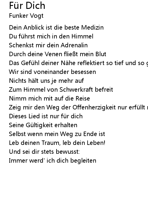| Das Gefü hl deiner N he reflektiert so tief und so gut | |
