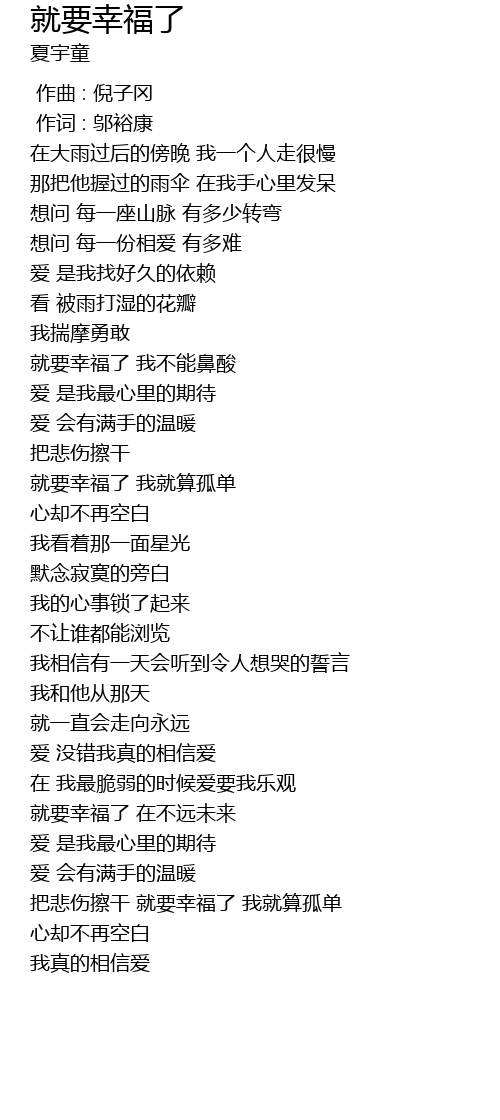 | [01:33.53] | 就要幸福了 我就算孤单 |
