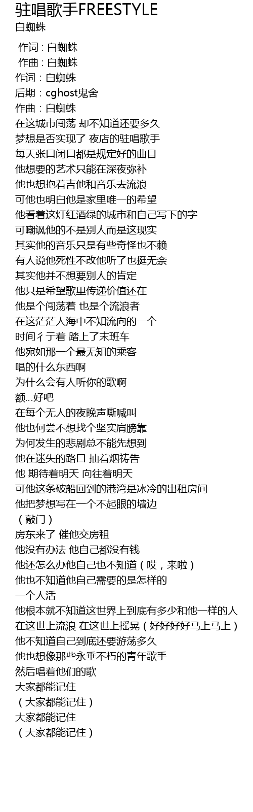 | [00:00.000] | 作词 : 白蜘蛛 |