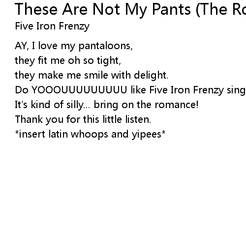 | Song | These Are Not My Pants (The Rock Opera) R&B |