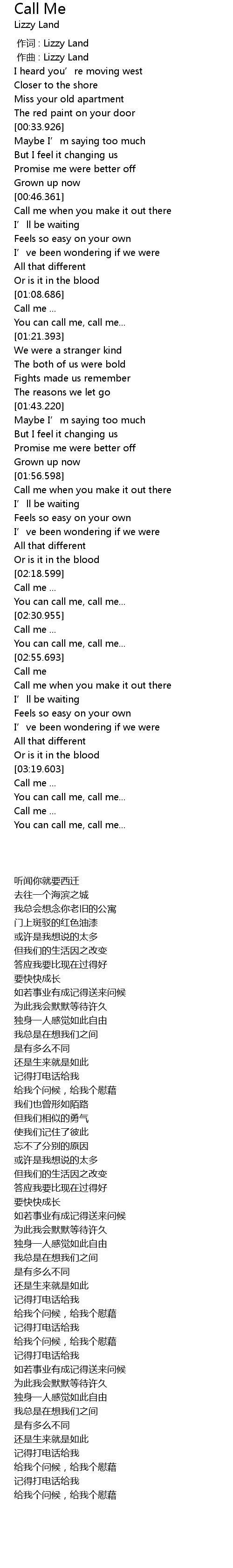 | [00:01.000] | zuò qǔ : Lizzy Land |