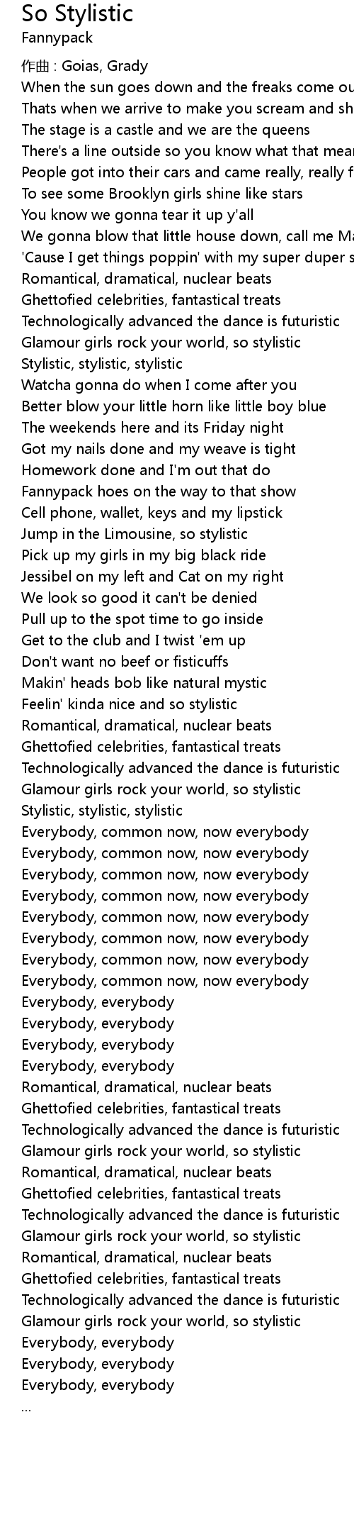 | Song | So Stylistic |