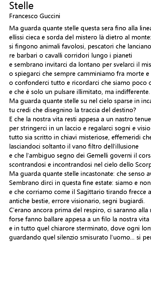 | Ma guarda quante stelle su nel cielo sparse in incalcolabile cammino: | |