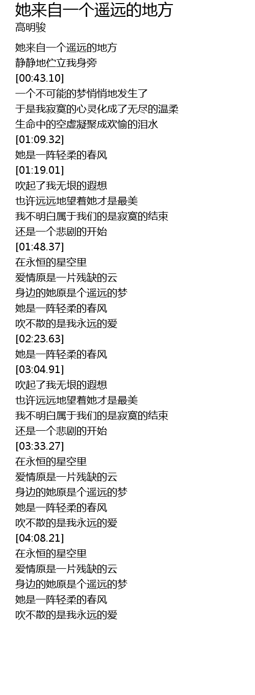 | [00:31.35] | 她来自一个遥远的地方 |