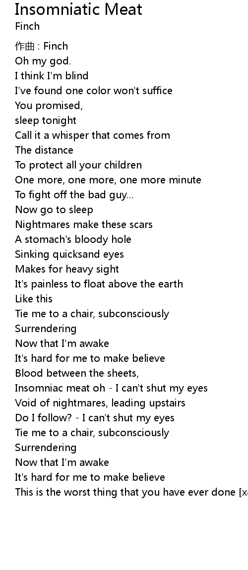 | Insomniac meat oh I can' t shut my eyes | |