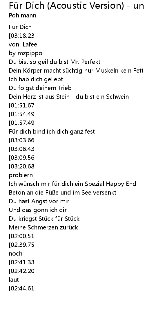 | [03:30.70][03:06.43][02:06.47][01:08.03] | Fü r dich werd ich operiern |