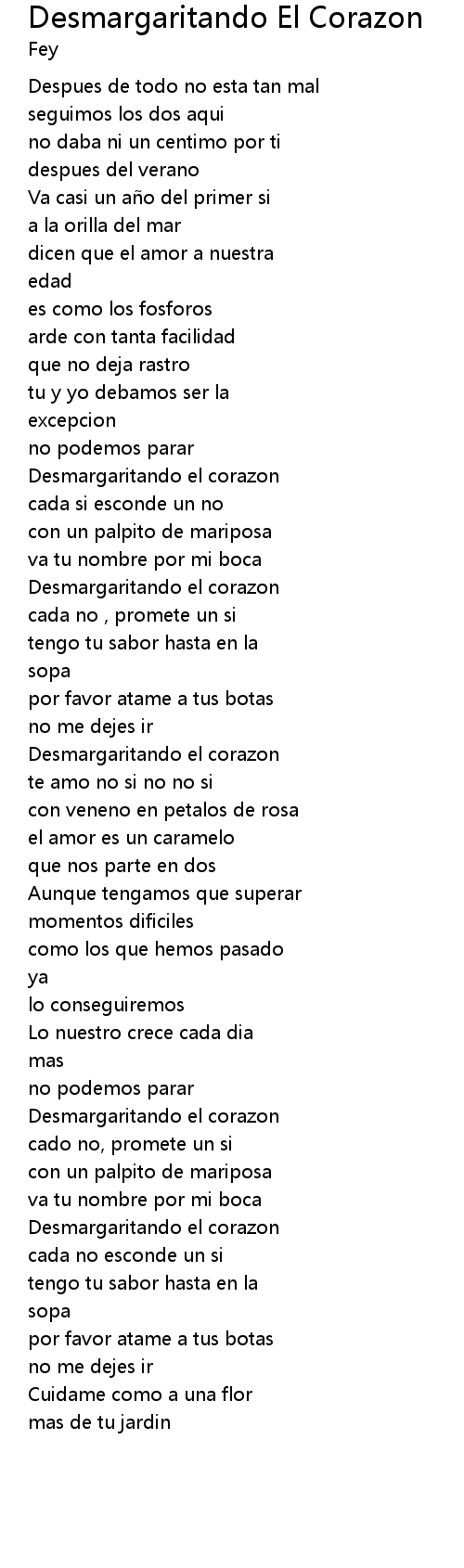 | Song | Desmargaritando El Corazon |