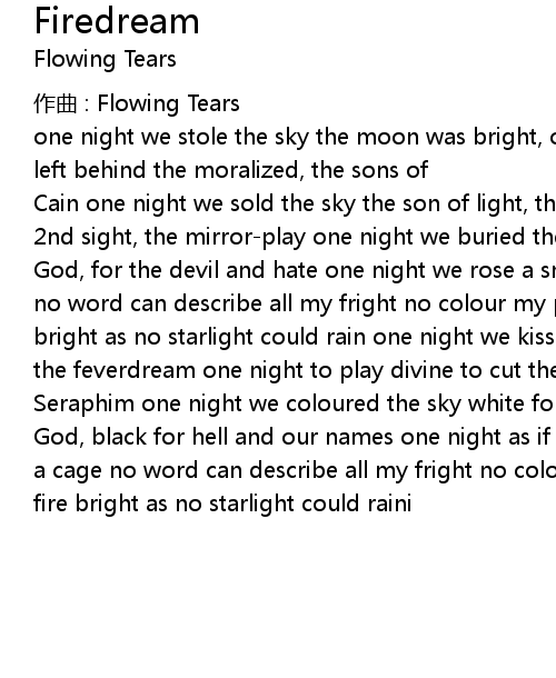 | God, for the devil and hate one night we rose a smile for a life inside a cage no word can describe all my fright no colour my pain defy them stir the fire bright as no starlight could rain one night we kissed goodbye the merry child, the feverdream one night to play divine to cut the wings of | |
