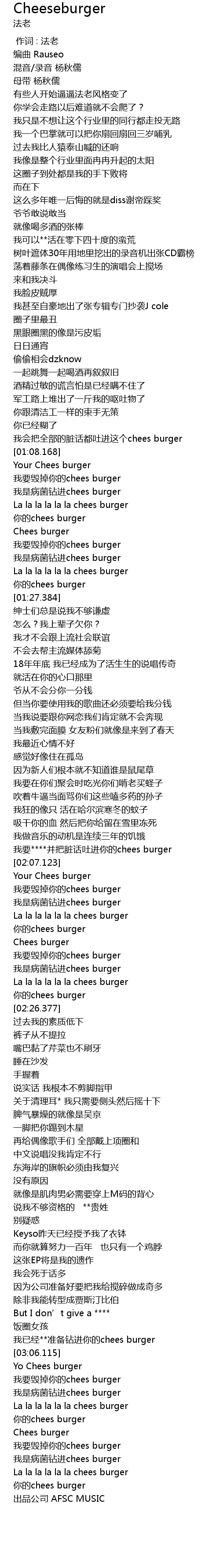 | [03:17.121] | wo yao hui diao ni de chees burger |