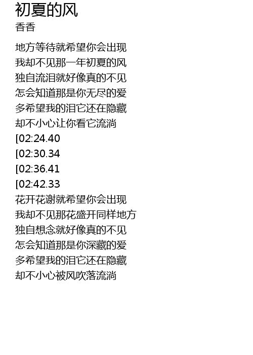 | [01:30.69][02:42.33][03:30.11] | 我在期待那一年初夏的风吹动 |