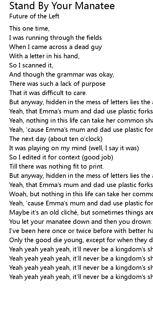 | Song | Stand By Your Manatee |