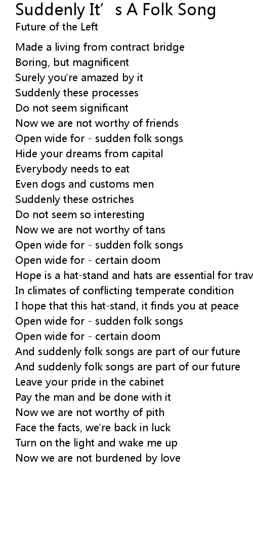 Suddenly It’s A Folk Song Suddenly It' s A Folk Song Lyrics