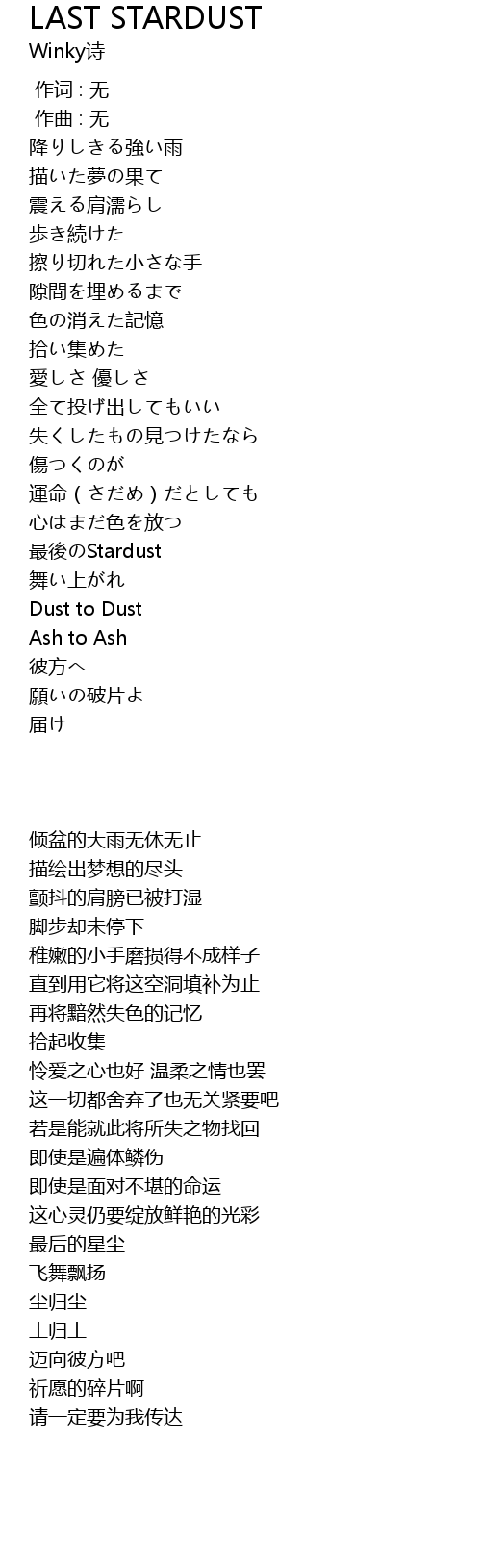 zuì hòu Stardust |