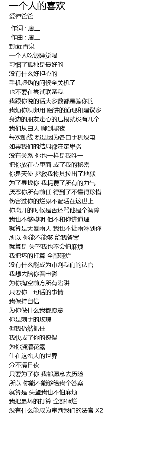| [00:00.000] | 作词 : 唐三 |