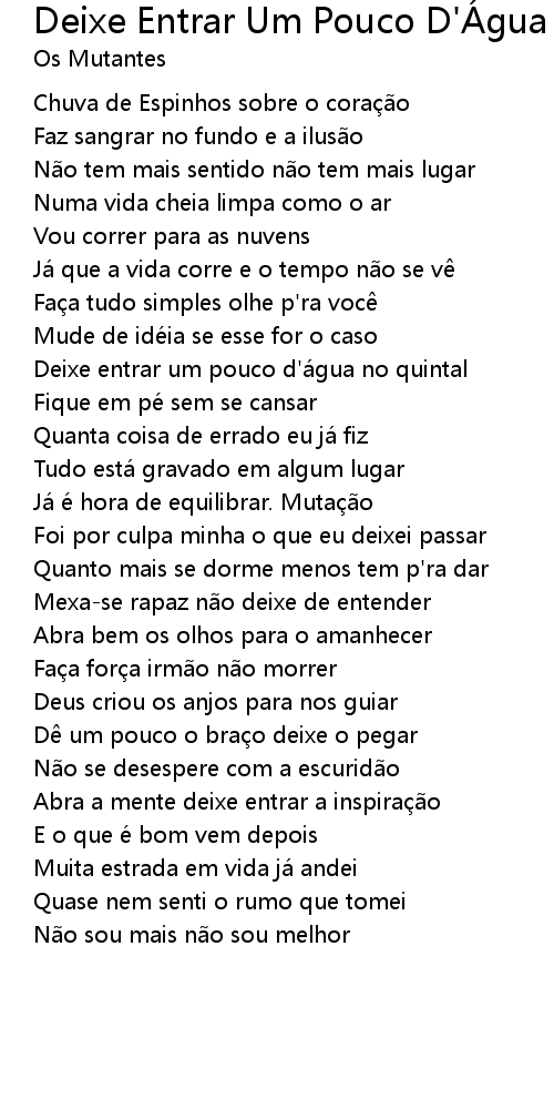 | Song | Deixe Entrar Um Pouco D'Água No Quintal |