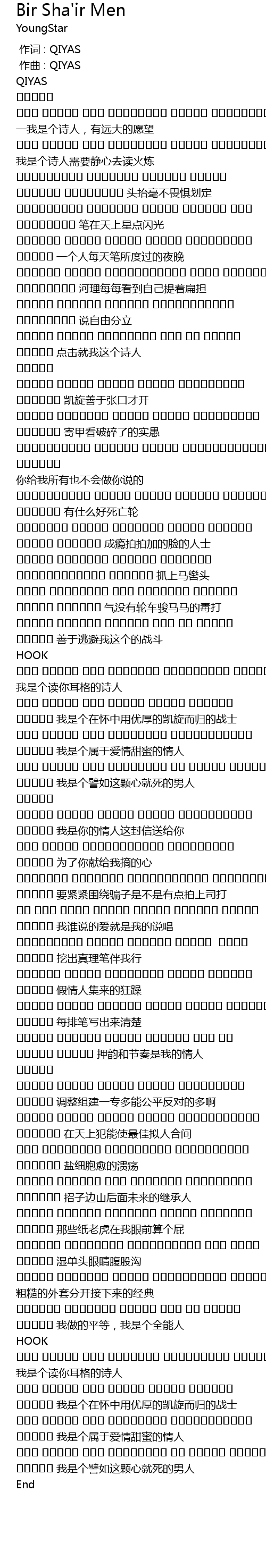 | [00:22.804] | بىر شائىر مەن جىسمىمنى ئوتتا تاۋلىغان 我是个诗人需要静心去读火炼 |
