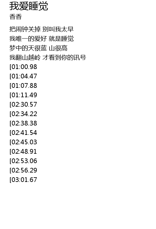 | [03:11.02][02:34.22][01:22.57] | mei yi miao mei yi miao mei miao |