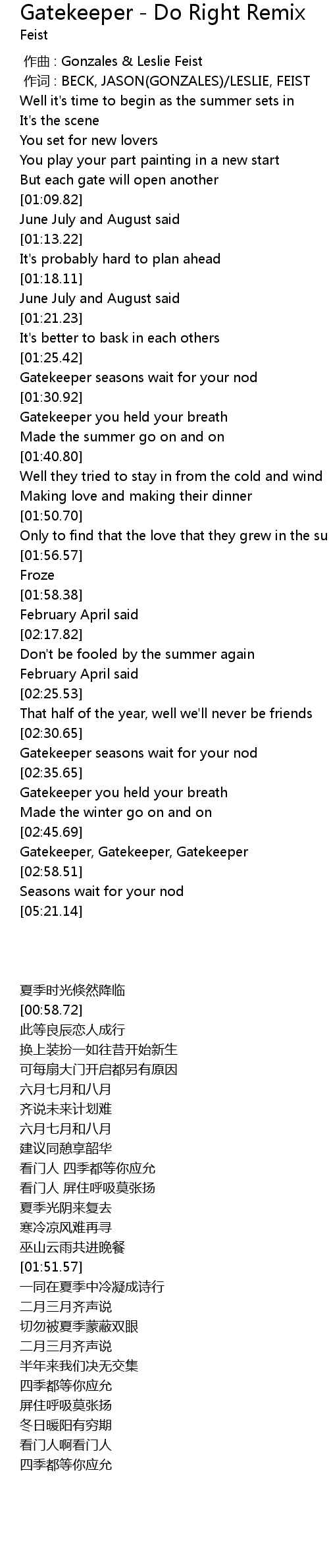 | [02:49.00] | Gatekeeper, Gatekeeper, Gatekeeper |