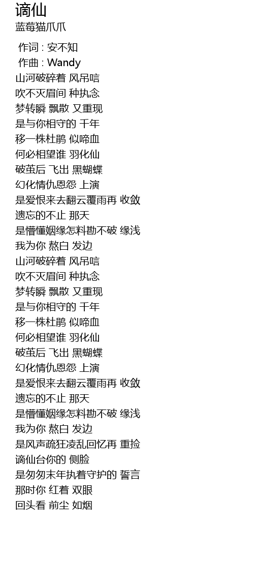 | [02:32.556] | 何必相望谁 羽化仙 |