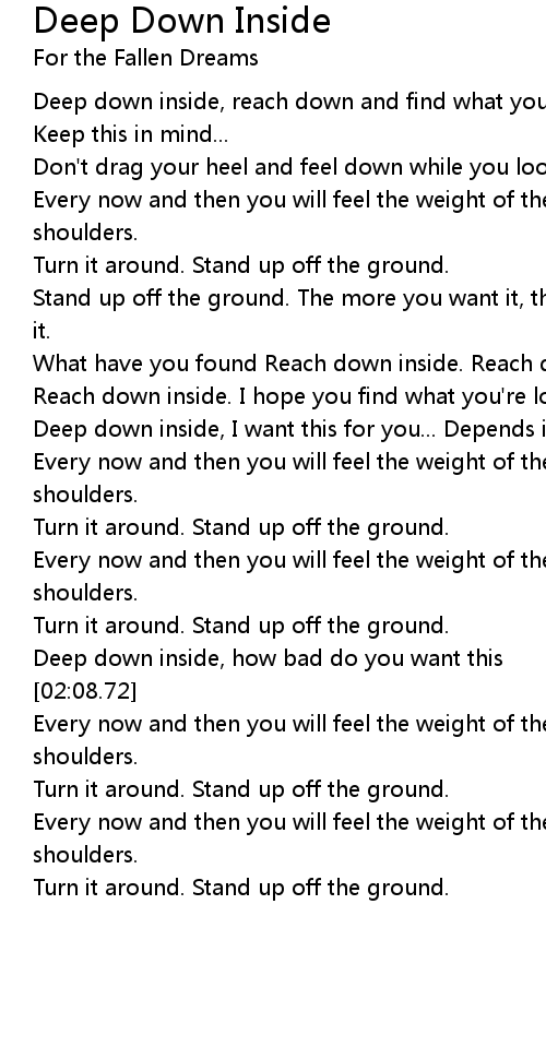 Deep down inside, reach down and find what you're looking for. |