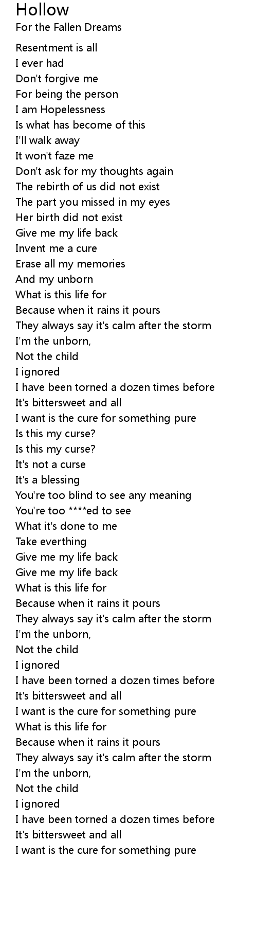 I have been torned a dozen times before |