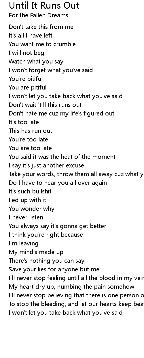 I'll never stop feeling until all the blood in my veins runs out, letting |