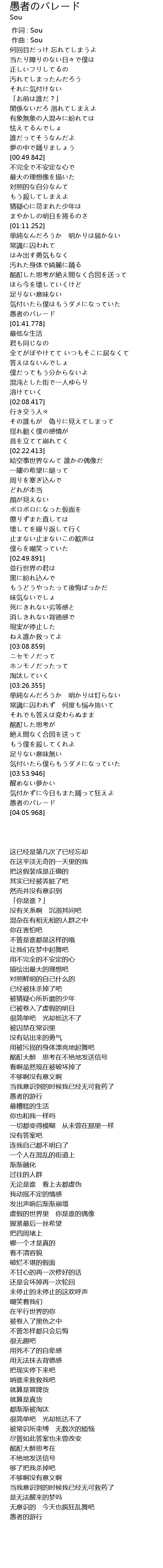 | [02:22.695] | 絵空事世界なんて 誰かの偶像だ |