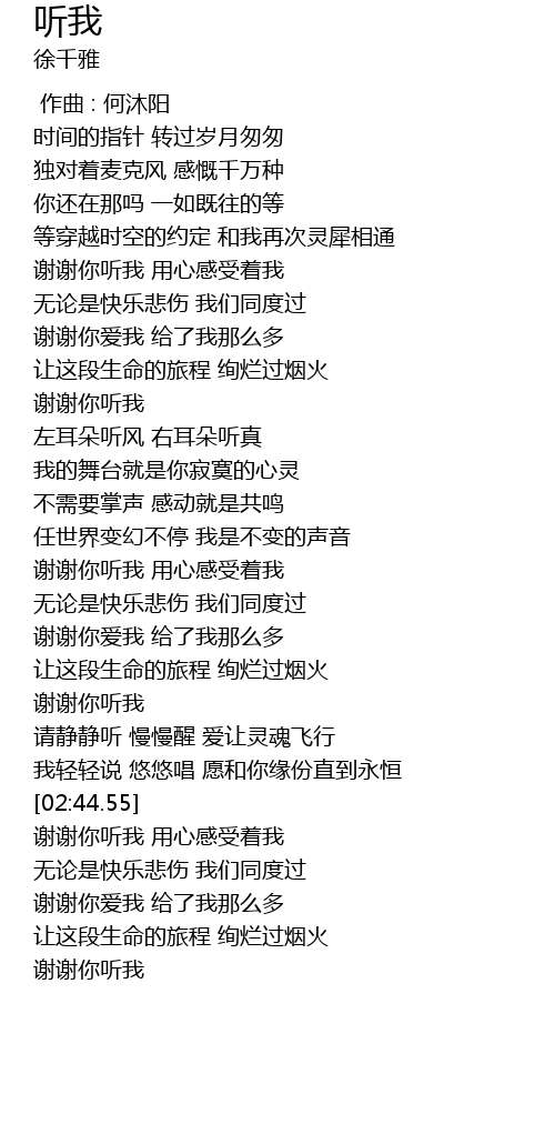 | [02:50.02] | 谢谢你听我 用心感受着我 |