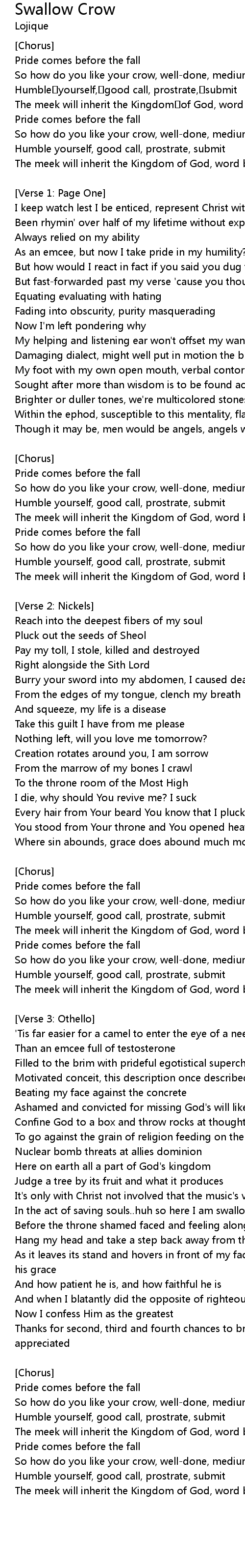 | In the act of saving souls..huh so here I am swallowing crows | |