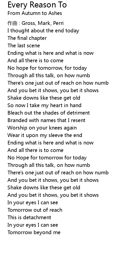 | Song | Every Reason To |