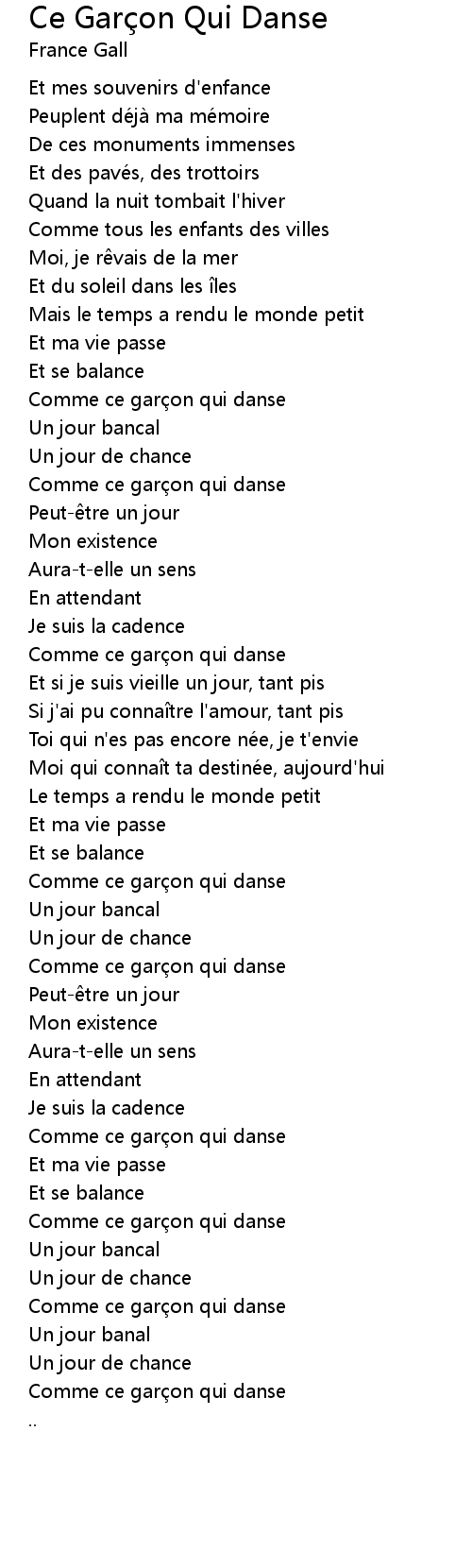 | Song | Ce Garçon Qui Danse |