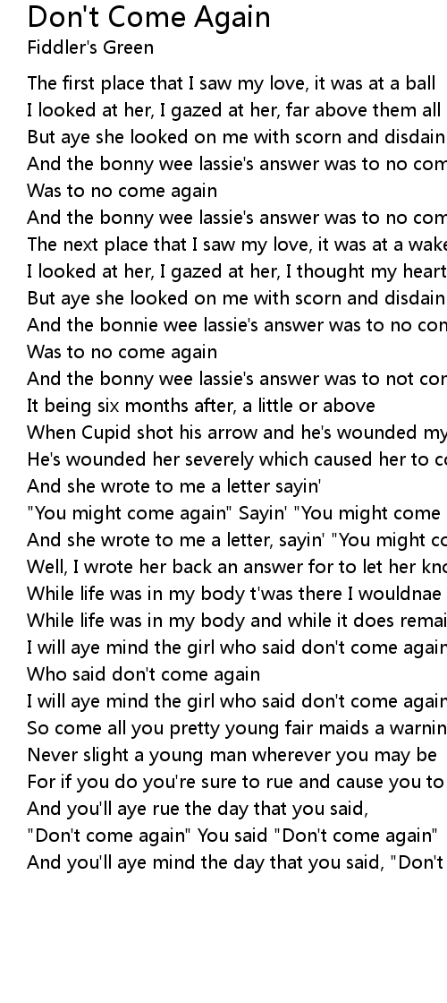 And you'll aye mind the day that you said, "Don't come again" |