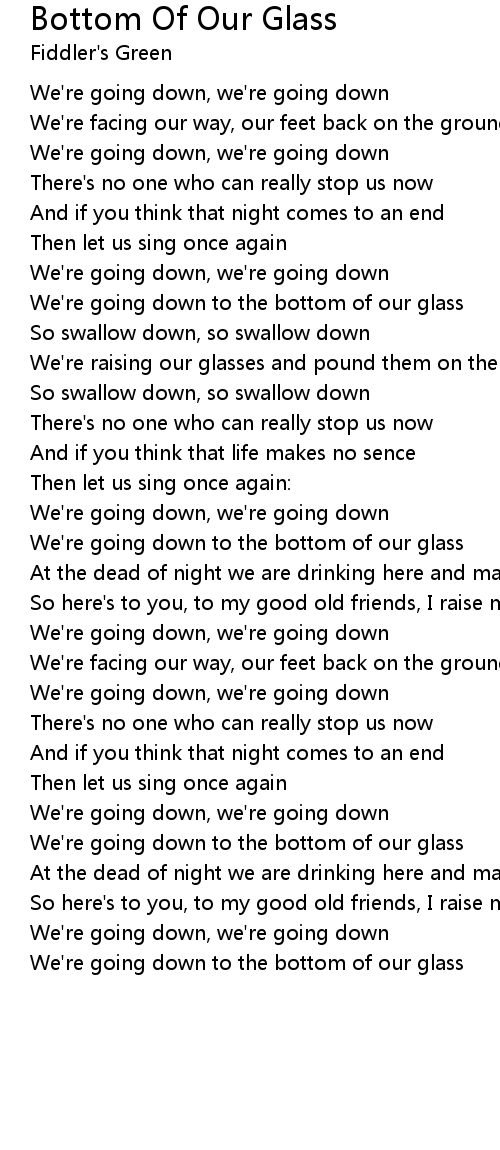 We're going down to the bottom of our glass |