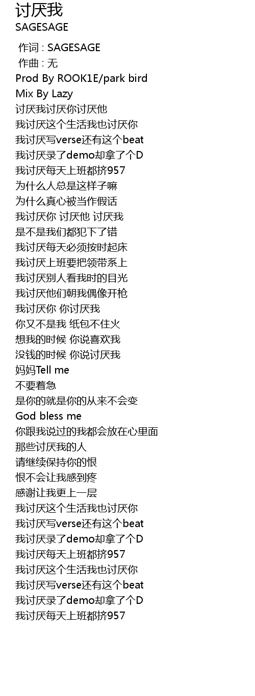 | [00:16.391] | 我讨厌这个生活我也讨厌你 |
