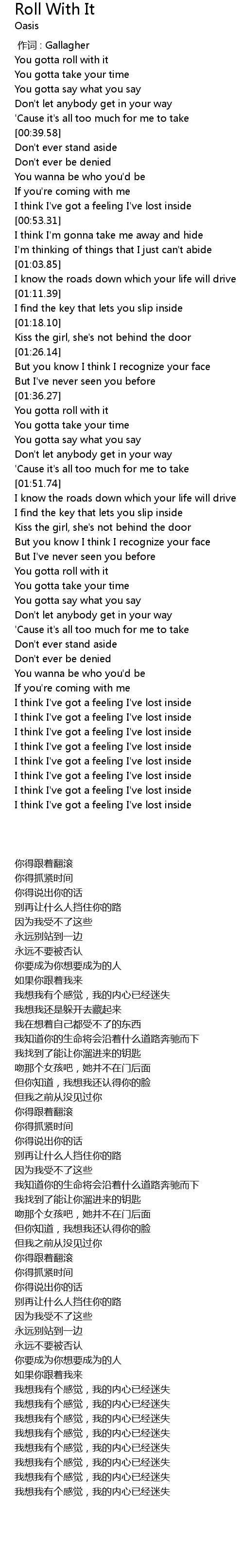 | [00:50.16] | I think I' ve got a feeling I' ve lost inside |