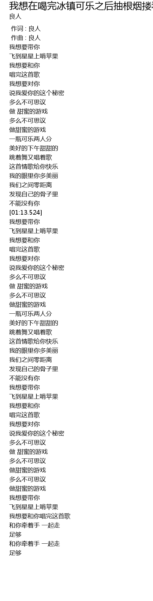 | Song | 我想在喝完冰镇可乐之后抽根烟搂着你一起看楼下人来人往的街道然后抬头数星星 demo |