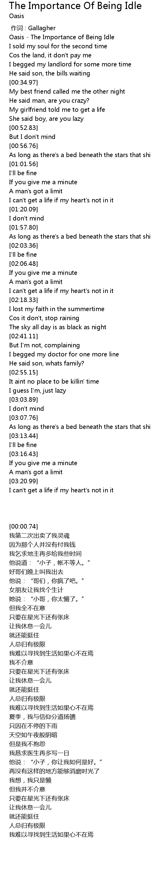 | [00:00.74] | Oasis - The Importance of Being Idle |