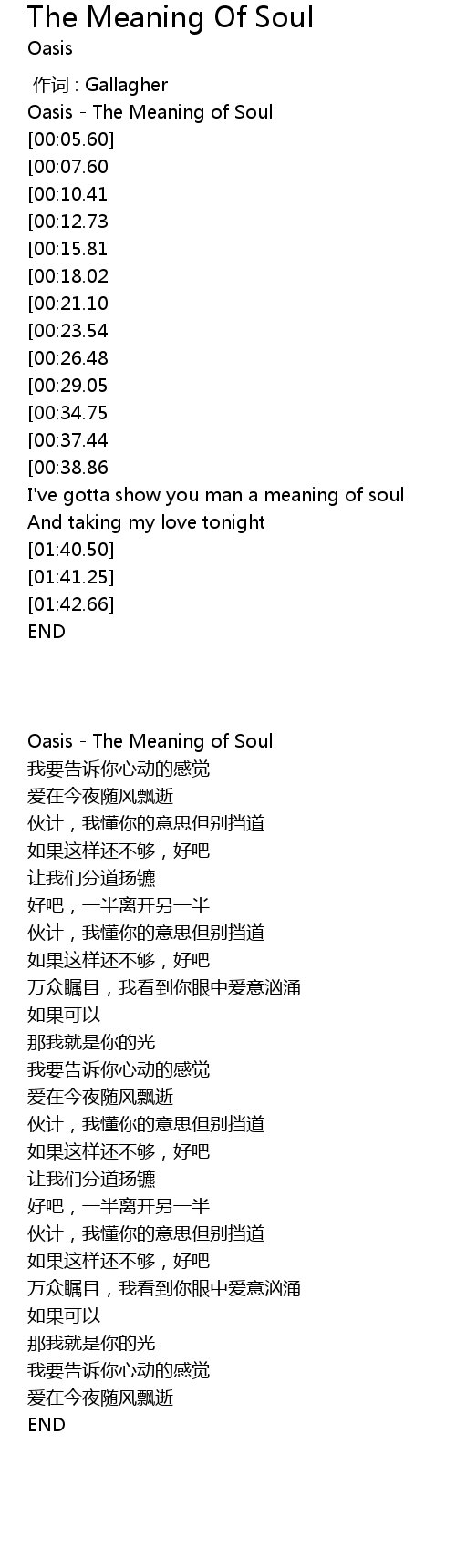 | [00:00.00] | Oasis - The Meaning of Soul |